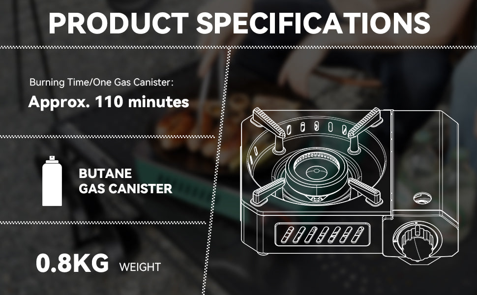 The Electric Ignition in this Portable Butane Camping Stove makes starting the burner a breeze. Adjusting the heat output is equally simple, providing a hassle-free cooking experience.